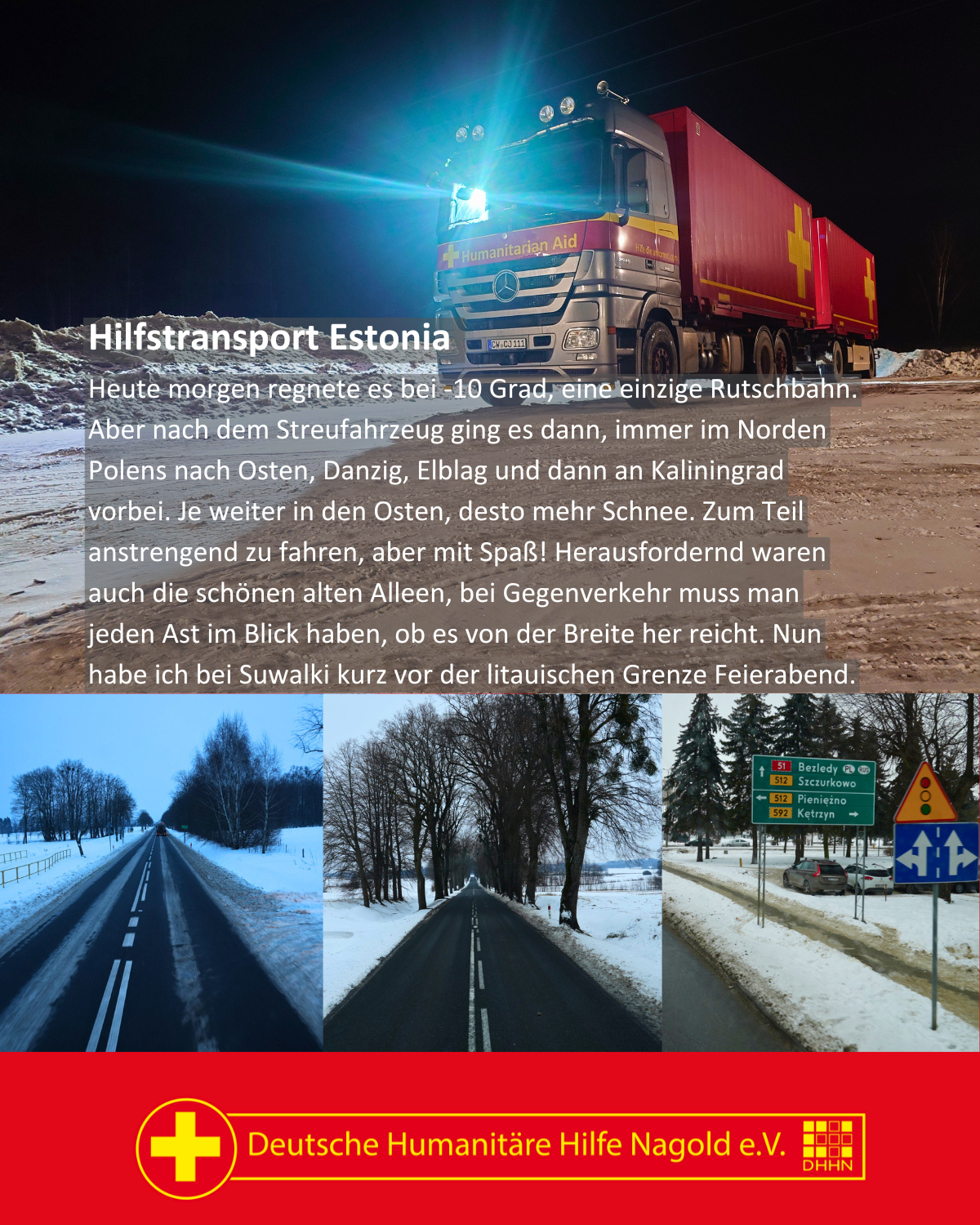 Heute morgen regnete es bei -10 Grad, eine einzige Rutschbahn. Aber nach dem Streufahrzeug ging es dann, immer im Norden Polens nach Osten, Danzig, Elblag und dann an Kaliningrad vorbei. Je weiter in den Osten, desto mehr Schnee. Zum Teil anstrengend…