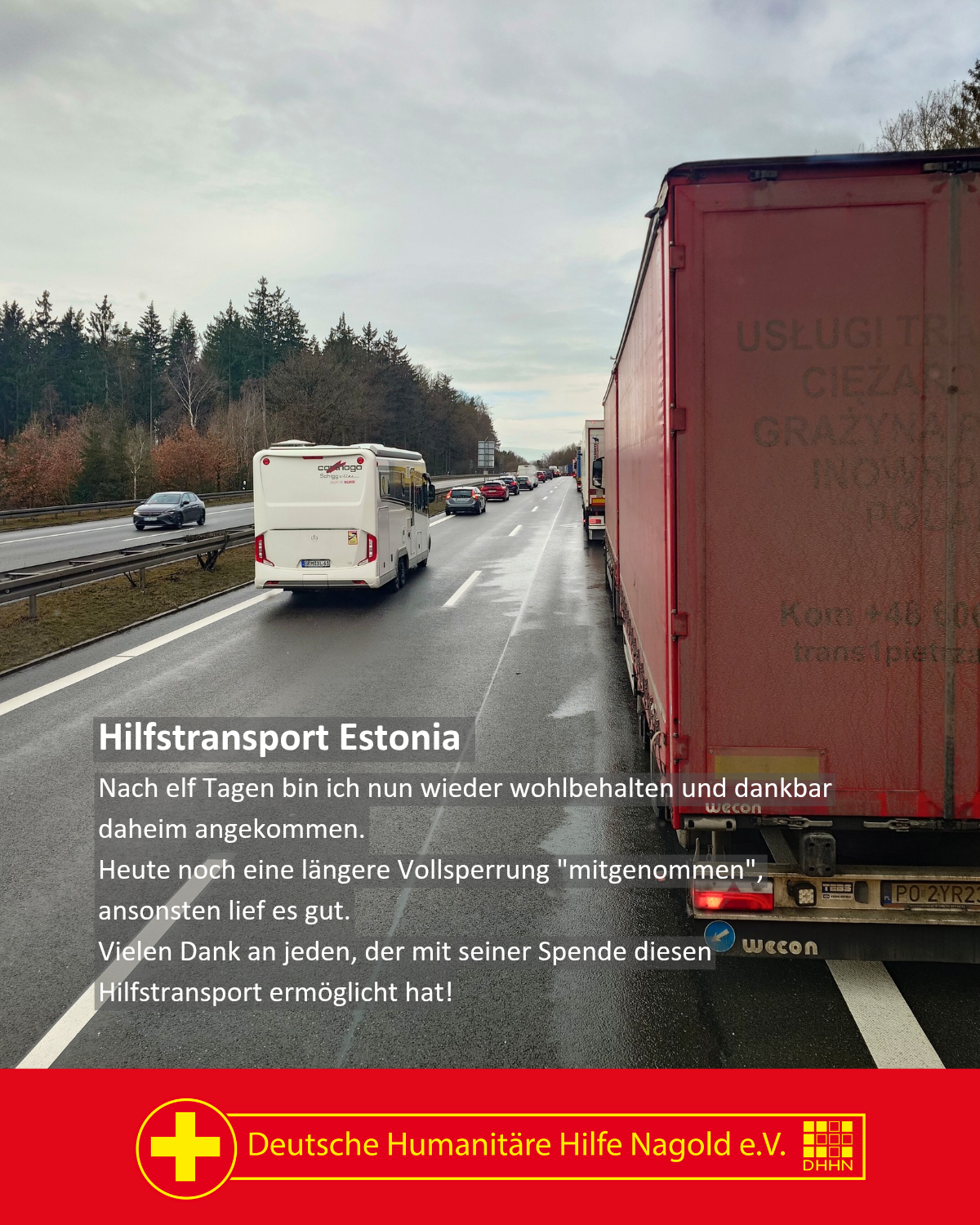 Nach elf Tagen bin ich nun wieder wohlbehalten und dankbar daheim angekommen.Heute noch eine längere Vollsperrung "mitgenommen", ansonsten lief es gut.Vielen Dank an jeden, der mit seiner Spende diesen Hilfstransport ermöglicht hat!