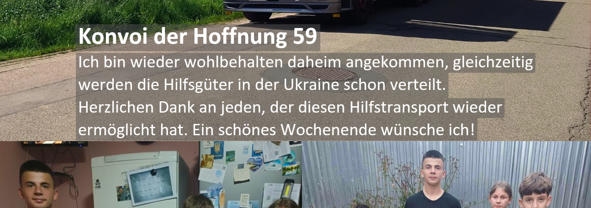 Ich bin wieder wohlbehalten daheim angekommen, gleichzeitig werden die Hilfsgüter in der Ukraine schon verteilt.Herzlichen Dank an jeden, der diesen Hilfstransport wieder ermöglicht hat. Ein schönes Wochenende wünsche ich!
