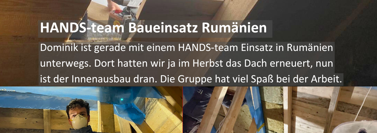 Dominik ist gerade mit einem HANDS-team Einsatz in Rumänien unterwegs. Dort hatten wir ja im Herbst das Dach erneuert, nun ist der Innenausbau dran. Die Gruppe hat viel Spaß bei der Arbeit.