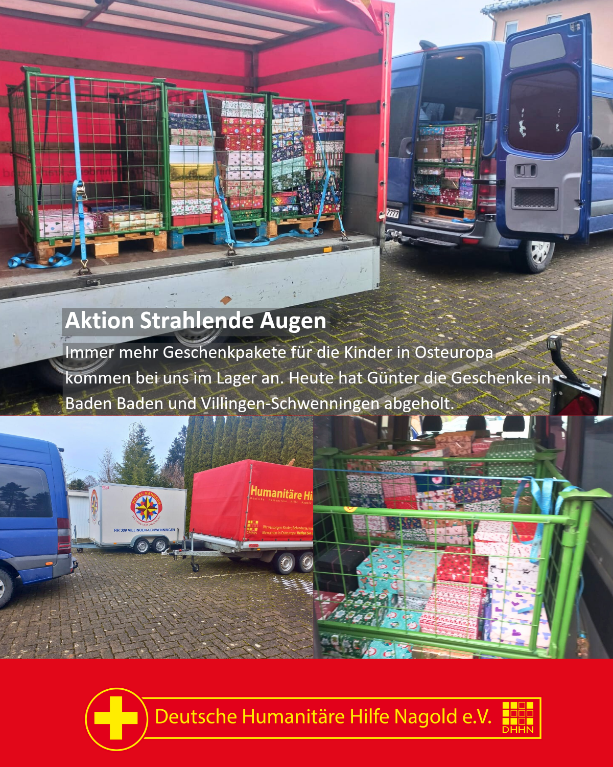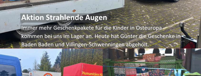 Immer mehr Geschenkpakete für die Kinder in Osteuropa kommen bei uns im Lager an. Heute hat Günter die Geschenke in Baden Baden und Villingen-Schwenningen abgeholt.
