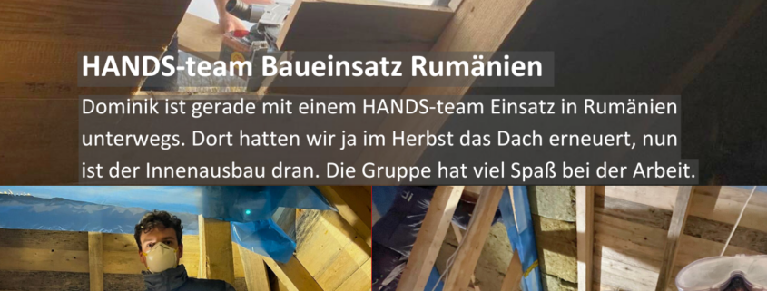 Dominik ist gerade mit einem HANDS-team Einsatz in Rumänien unterwegs. Dort hatten wir ja im Herbst das Dach erneuert, nun ist der Innenausbau dran. Die Gruppe hat viel Spaß bei der Arbeit.