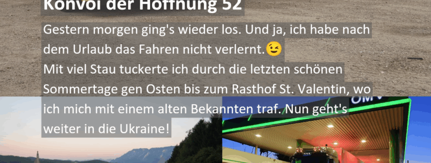 Mit viel Stau tuckerte ich durch die letzten schönen Sommertage gen Osten bis zum Rasthof St. Valentin, wo ich mich mit einem alten Bekannten traf. Nun geht’s weiter in die Ukraine!