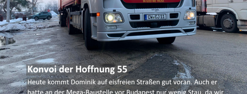 Heute kommt Dominik auf eisfreien Straßen gut voran. Auch er hatte an der Mega-Baustelle vor Budapest nur wenig Stau, da wir antizyklisch fahren.