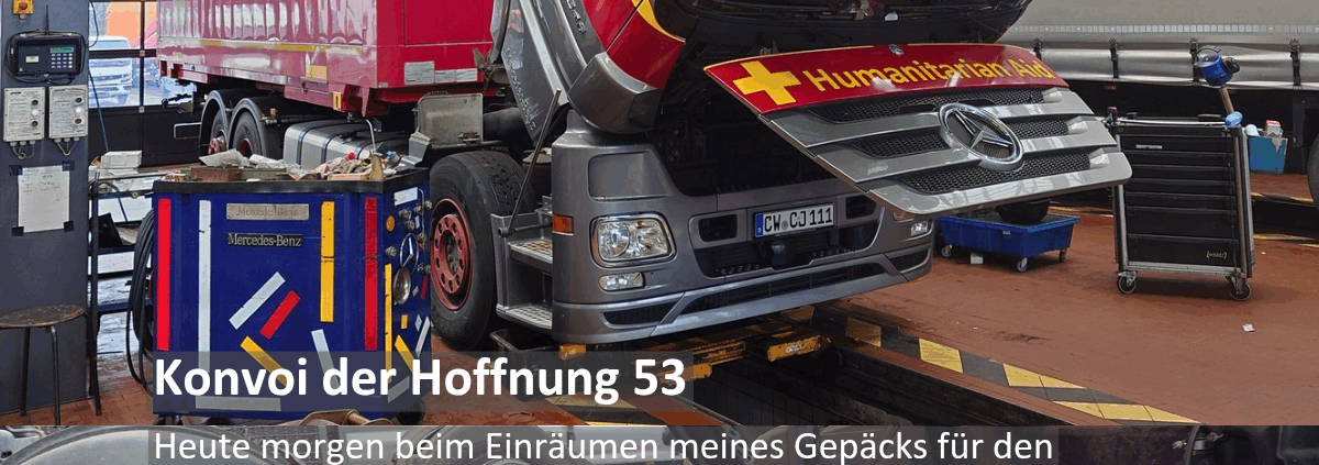 Heute morgen beim Einräumen meines Gepäcks für den Hilfstransport in die Ukraine sticht mich doch glatt eine Wespe in den Hals. Jetzt mache ich in Ulm einen planmäßigen Werkstattstop. Die Luftpresser machen Probleme, und ohne Druckluft keine Bremsen. Wenns fertig ist, geht’s mit dem voll beladenen Lkw weiter in Richtung Osten.