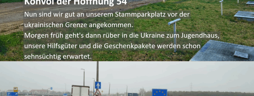 Nun sind wir gut an unserem Stammparkplatz vor der ukrainischen Grenze angekommen.