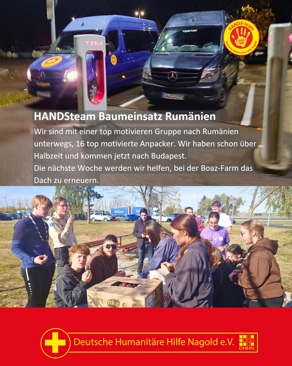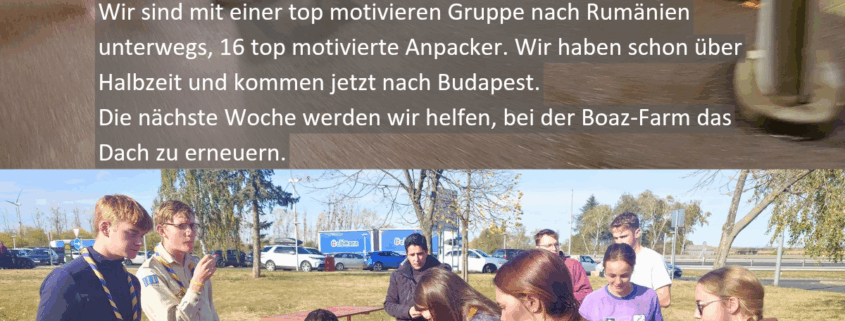 Wir sind mit einer top motivieren Gruppe nach Rumänien unterwegs, 16 top motivierte Anpacker. Wir haben schon über Halbzeit und kommen jetzt nach Budapest.
