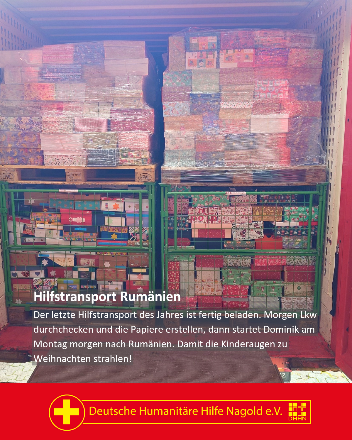 Der letzte Hilfstransport des Jahres ist fertig beladen. Morgen Lkw durchchecken und die Papiere erstellen, dann startet Dominik am Montag morgen nach Rumänien. Damit die Kinderaugen zu Weihnachten strahlen!